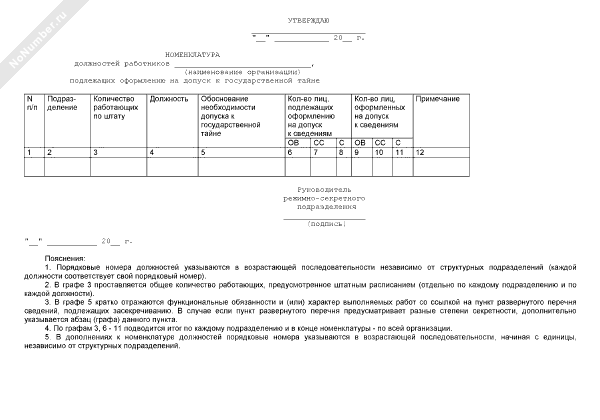 Формы учетной документации, необходимой для допуска должностных лиц и граждан Российской Федерации к государственной тайне. Номенклатура должностей работников организации подлежащих оформлению на допуск к государственной тайне (форма № 3)