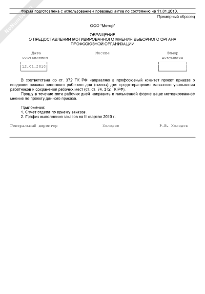 - 31Обращение о предоставлении мотивированного мнения выборного органа профсоюзной организации