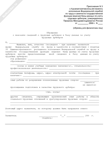 - 23Обращение о внесении сведений о трудовых арбитрах в базу данных по учету трудовых арбитров (образец для физических лиц)