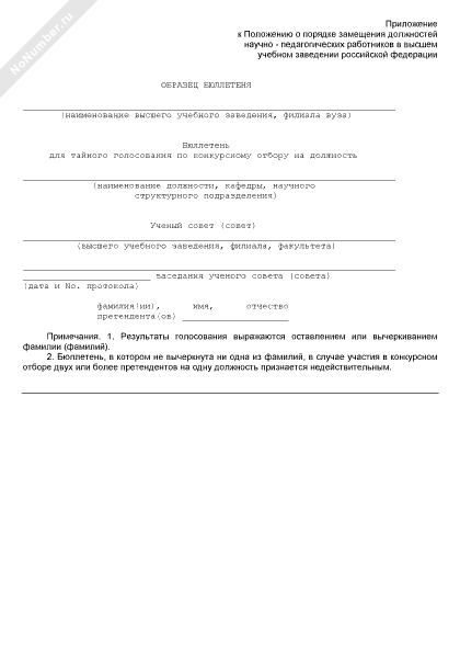 - 184Образец бюллетеня для тайного голосования по конкурсному отбору на должность