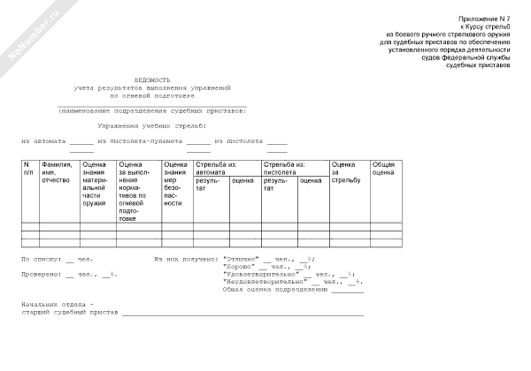 - 186Образец ведомости учета результатов выполнения упражнений по огневой подготовке судебных приставов