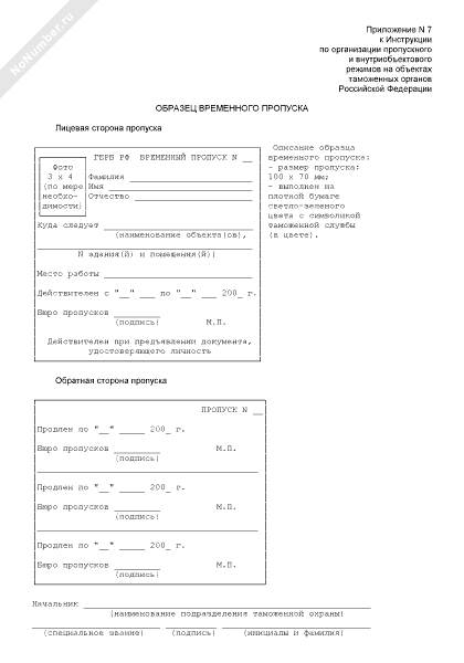 - 190Образец временного пропуска на объектах таможенных органов Российской Федерации