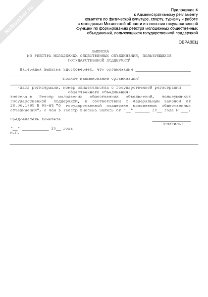 - 192Образец выписки из реестра молодежных общественных объединений, пользующихся государственной поддержкой на территории Московской области