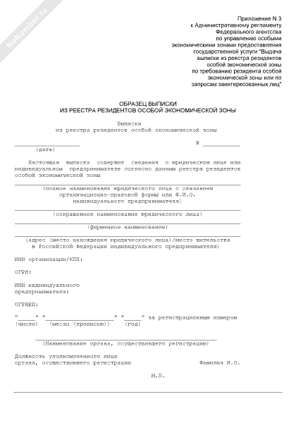 - 193Образец выписки из реестра резидентов особой экономической зоны
