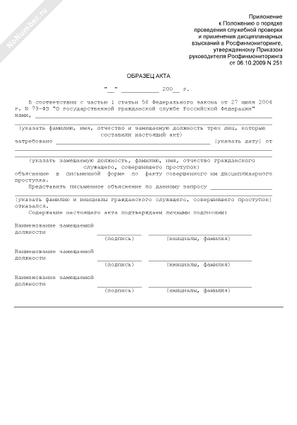 - 43Образец акта об отказе гражданского служащего Росфинмониторинга, от дачи объяснений в письменной форме по факту совершенного им дисциплинарного проступка