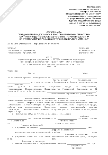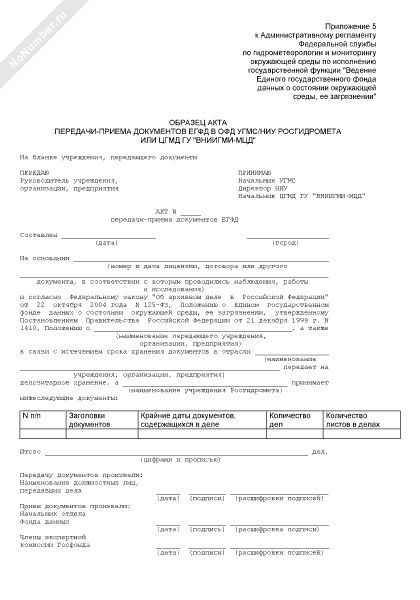 - 49Образец акта передачи-приема документов ЕГФД при изменении территории или профиля деятельности одного УГМС, НИУ и отнесения их к территории или профилю деятельности другого УГМС, НИУ
