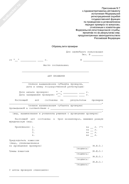 - 60Образец акта проверки по вопросам, отнесенным к компетенции Федеральной регистрационной службы (ее территориальных органов)
