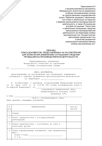 - 607Образец описи документов, представленных на рассмотрение для заключения (изменения) соглашения о ведении промышленно-производственной деятельности на территории особой экономической зоны