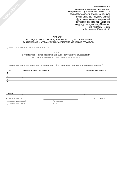 - 609Образец описи документов, представляемых для получения разрешения на трансграничное перемещение отходов