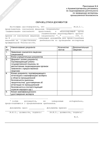 - 608Образец описи документов для предоставления лицензии на осуществление деятельности по проведению экспертизы промышленной безопасности