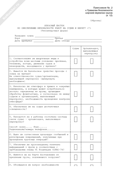 - 610Образец опросного листка по обеспечению безопасности работ на судне и берегу