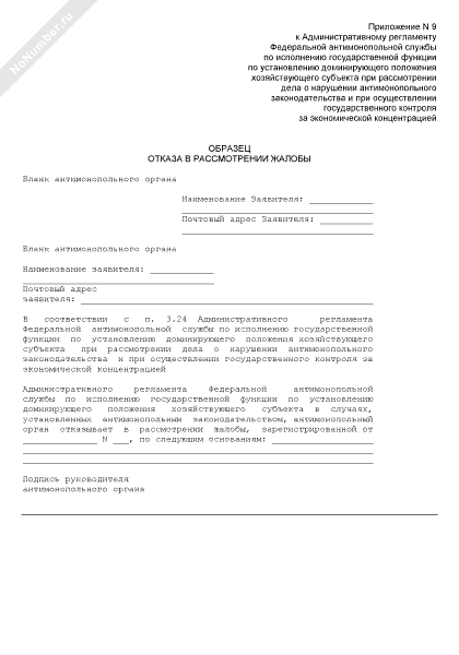 - 619Образец отказа антимонопольного органа в рассмотрении жалобы