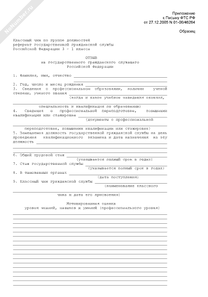 - 614Образец отзыва на государственного гражданского служащего Российской Федерации