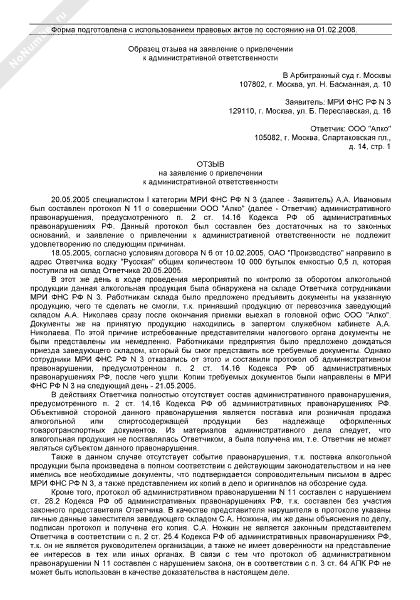 - 617Образец отзыва на заявление о привлечении к административной ответственности
