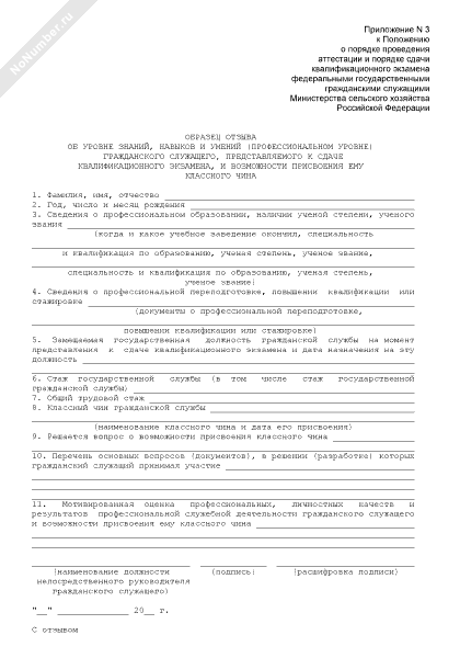 - 616Образец отзыва об уровне знаний, навыков и умений (профессиональном уровне) гражданского служащего, представляемого к сдаче квалификационного экзамена, и возможности присвоения ему классного чина