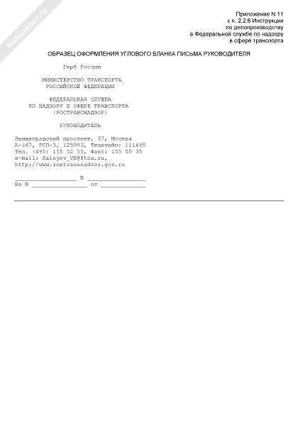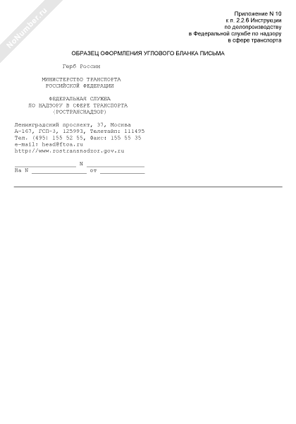 - 638Образец оформления углового бланка письма в Федеральной службе по надзору в сфере транспорта