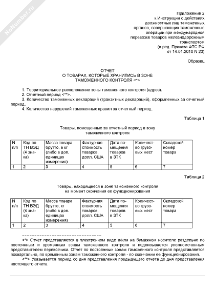 - 631Образец отчета о товарах, которые хранились в зоне таможенного контроля
