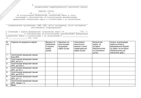 - 633Образец отчета об использовании федеральных специальных марок в срок, указанный в обязательстве об использовании приобретаемых федеральных специальных марок в соответствии с их назначением (для маркировки алкогольной продукции, производимой на территории Российской Федерации)