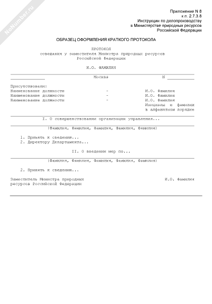 - 764Образец оформления краткого протокола совещания у заместителя Министра природных ресурсов Российской Федерации
