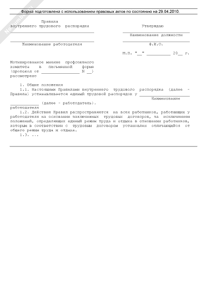 - 765Образец оформления первого листа правил внутреннего трудового распорядка