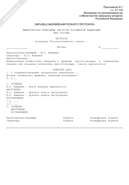 - 763Образец оформления полного протокола заседания Консультативного совета в Министерстве природных ресурсов Российской Федерации