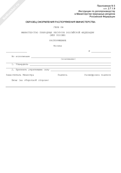 - 761Образец оформления распоряжения Министерства природных ресурсов Российской Федерации