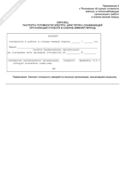 - 767Образец паспорта готовности электро- (или тепло-) снабжающей организации к работе в осенне-зимний период