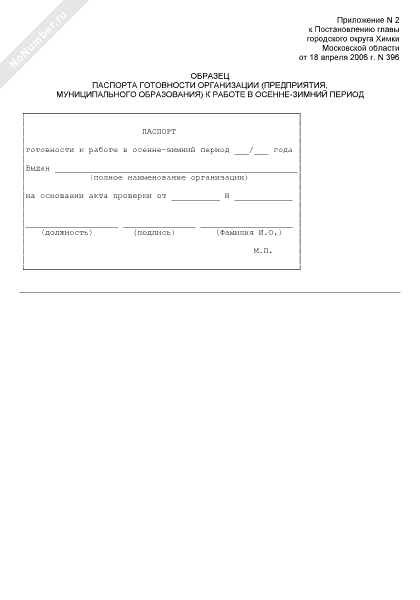 - 773Образец паспорта готовности организации (предприятия, муниципального образования) к работе в осенне-зимний период на территории города Химки Московской области