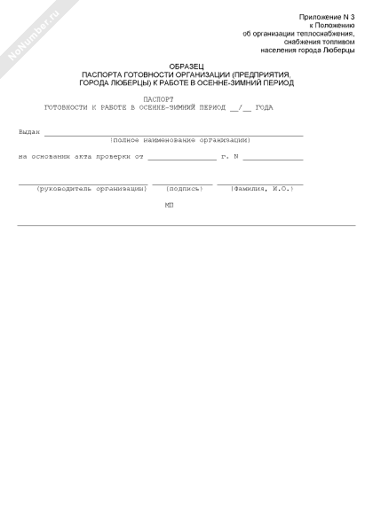 - 768Образец паспорта готовности организации (предприятия) г. Люберцы Московской области к работе в осенне-зимний период