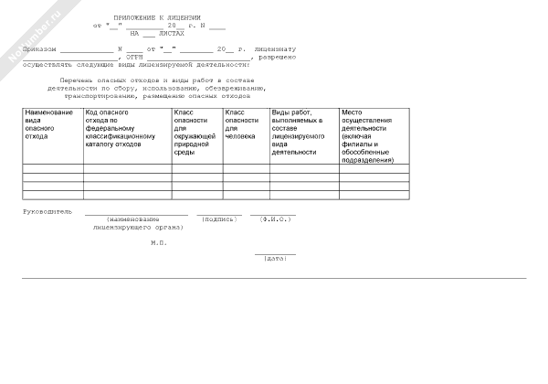 - 780Образец перечня опасных отходов и виды работ в составе деятельности по сбору, использованию, обезвреживанию, транспортированию, размещению опасных отходов (приложение к лицензии на деятельность по сбору, использованию, обезвреживанию, транспортировке, размещению опасных отходов в Федеральной службе по экологическому, технологическому и атомному надзору)