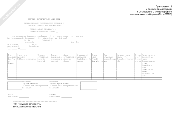 - 777Образец передаточной ведомости (международное пассажирское сообщение) (рус./нем.)
