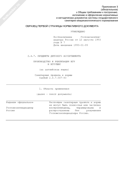- 774Образец первой страницы нормативного документа системы государственного санитарно-эпидемиологического нормирования