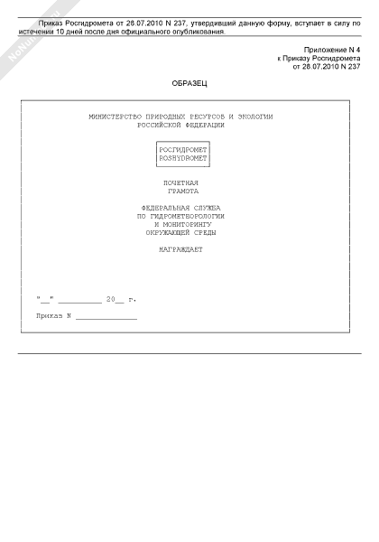 - 842Образец почетной грамоты Федеральной службы по гидрометеорологии и мониторингу окружающей среды