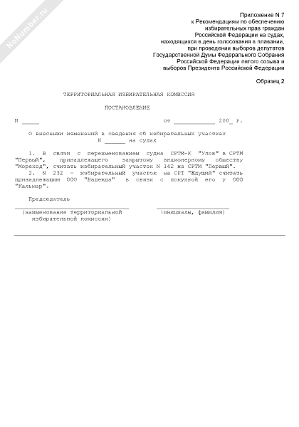 - 841Образец постановления о внесении изменений в сведения об избирательных участках на судах