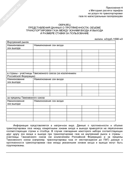 - 847Образец представления данных о протяженности, объеме транспортировки газа между зонами входа и выхода и размере ставки за пользование