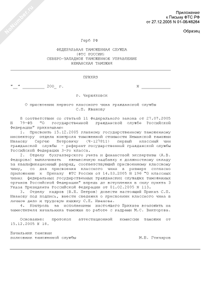 - 858Образец приказа о присвоении первого классного чина гражданской службы государственному гражданскому служащему Российской Федерации