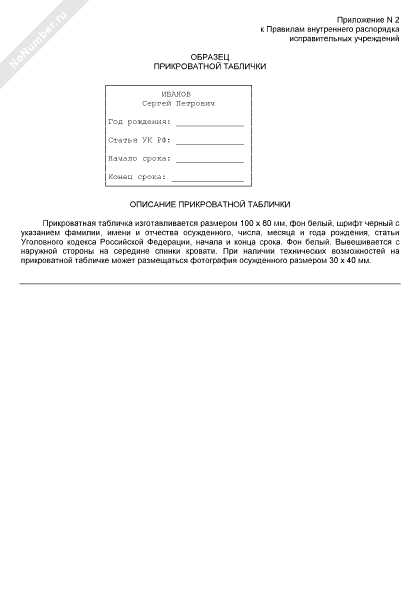 - 925Образец прикроватной таблички осужденного в исправительном учреждении