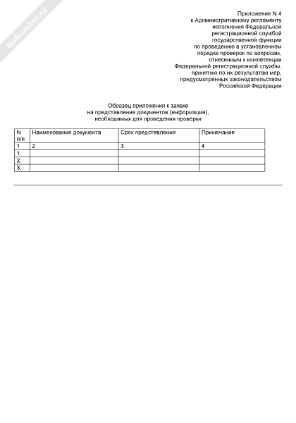 - 926Образец приложения к заявке на представление документов (информации), необходимых для проведения проверки по вопросам, отнесенным к компетенции Федеральной регистрационной службы (ее территориальных органов)
