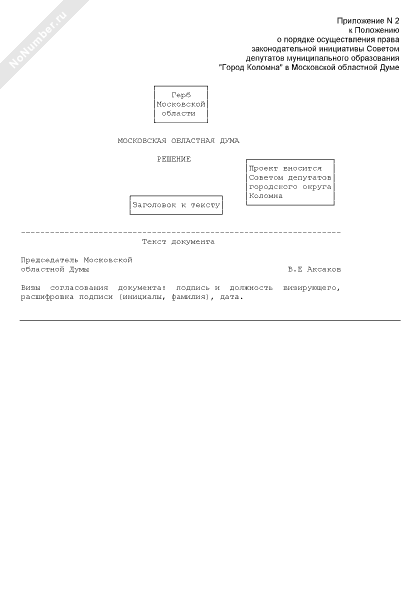 - 939Образец проекта закона (постановления) Московской областной Думы (вносится советом депутатов г. Коломны Московской области)