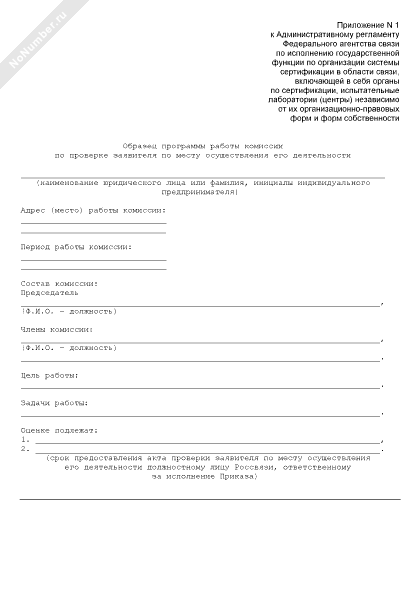 - 930Образец программы работы комиссии по проверке заявителя по месту осуществления его деятельности в области связи