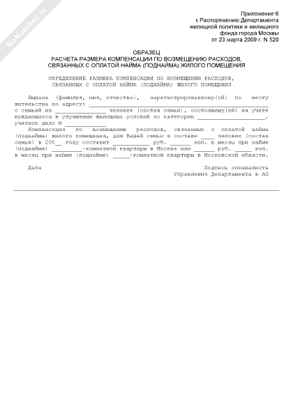 - 977Образец расчета размера компенсации по возмещению расходов, связанных с оплатой найма (поднайма) жилого помещения