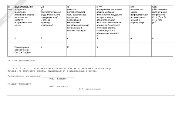 - 978Образец расчета суммы обеспечения исполнения обязательства об использовании приобретаемых федеральных специальных марок в соответствии с их назначением для маркировки алкогольной продукции, производимой на территории Российской Федерации