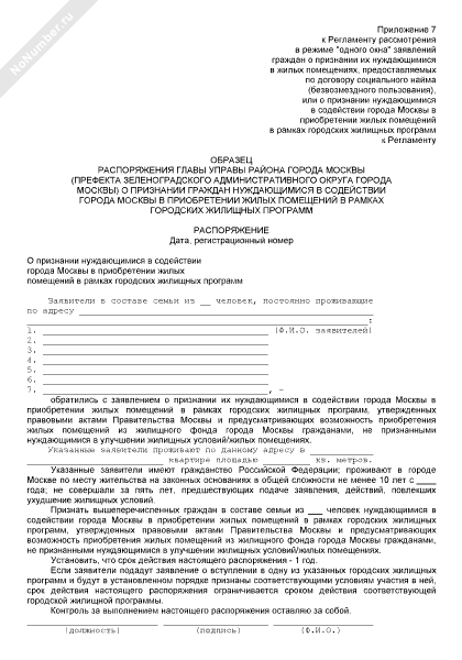 - 966Образец распоряжения главы управы района города Москвы (Префекта Зеленоградского административного округа города Москвы) о признании граждан нуждающимися в содействии города Москвы в приобретении жилых помещений в рамках городских жилищных программ