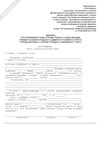 - 976Образец распоряжения главы управы района города Москвы (префекта Зеленоградского административного округа города Москвы) о снятии граждан с жилищного учета