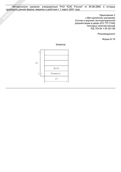 - 1245Образец этикетки регулирующих, функциональных приборов, датчиков автоматики, датчиков прямого действия, реле времени токовых реле, автоматов питания в цехах АСУ ТП (ТАИ) тепловых электростанций. Форма № 10