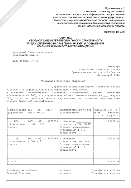 - 1255Образцы и типовые формы документов, сформированные в результате исполнения государственной функции по осуществлению контроля и координации за деятельностью государственных бюджетных учреждений Московской области. Образец сводной заявки территориального структурного подразделения о направлении на курсы повышения квалификации работников учреждений