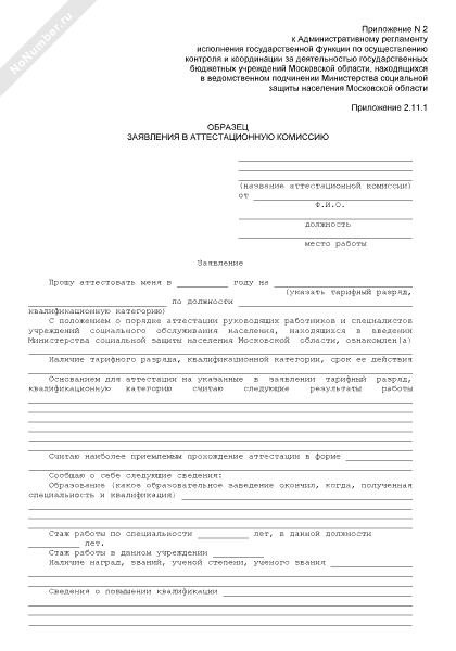 - 1256Образцы и типовые формы документов, сформированные в результате исполнения государственной функции по осуществлению контроля и координации за деятельностью государственных бюджетных учреждений Московской области. Образец заявления в аттестационную комиссию