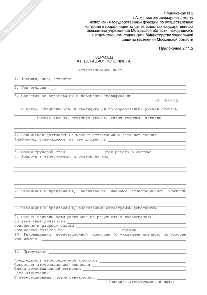 - 1257Образцы и типовые формы документов, сформированные в результате исполнения государственной функции по осуществлению контроля и координации за деятельностью государственных бюджетных учреждений Московской области. Образец аттестационного листа