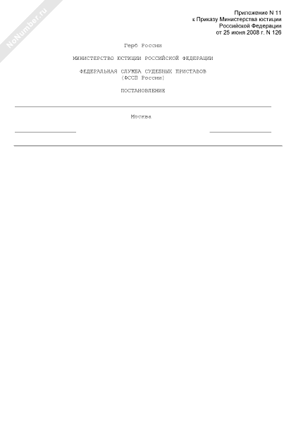Образец бланка постановления Федеральной службы судебных приставов
