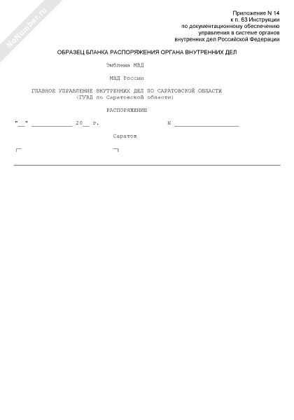 Образец бланка распоряжения главного управления внутренних дел по Саратовской области (рекомендуемый образец заполнения)
